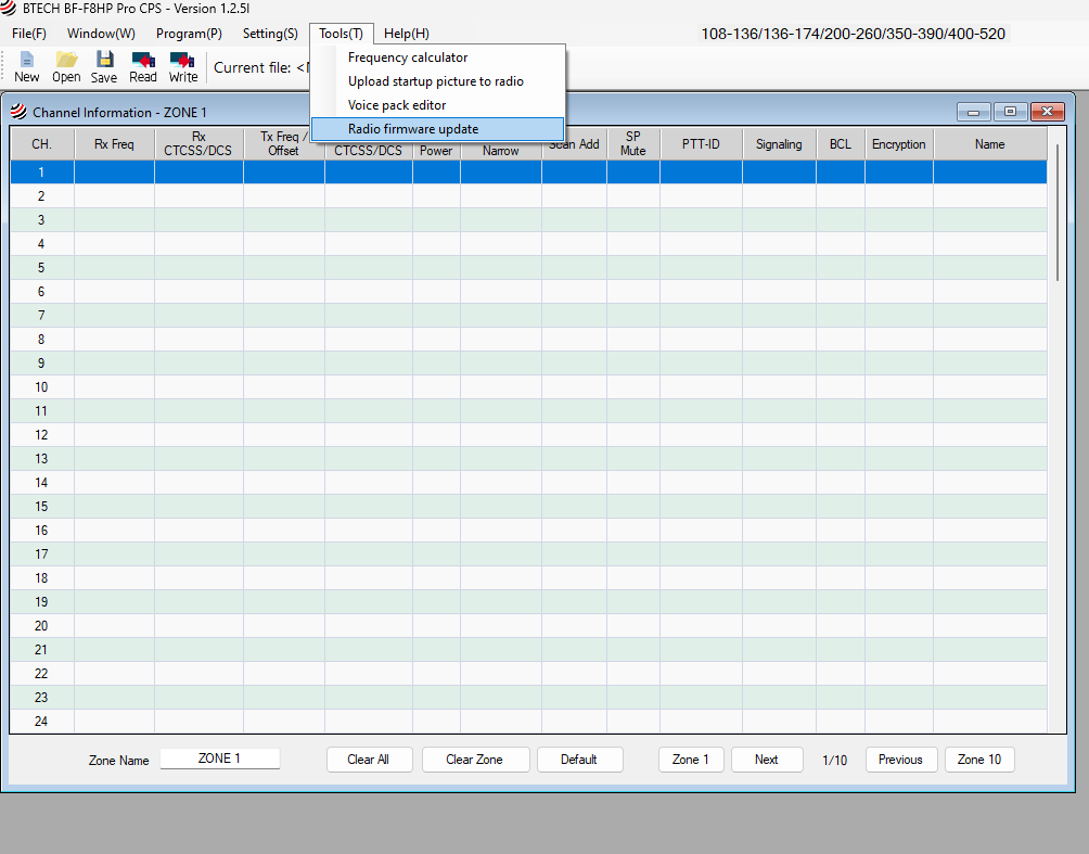 - Open the BTECH BF-F8HP PRO CPS software on your computer.