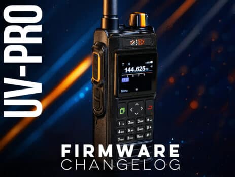This page lists official UV-PRO radio firmware releases in reverse chronological order. Update tip: After flashing, if the screen does not power back on, power off → hold OK (top-left green key) → power on to initialize the new firmware. Best practice: After major updates, back up your channels, then perform a Factory Reset and re-sync using the BTECH UV Programmer app. V0.9.2 — January 29, 2026 New KISS Mode Enhancements: Configure TX and RX frequencies independently, and set TX power for the KISS profile. DTMF...