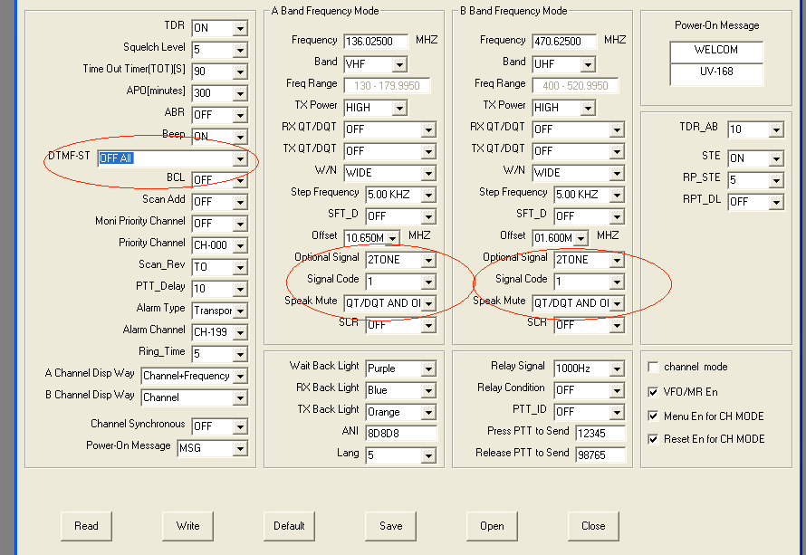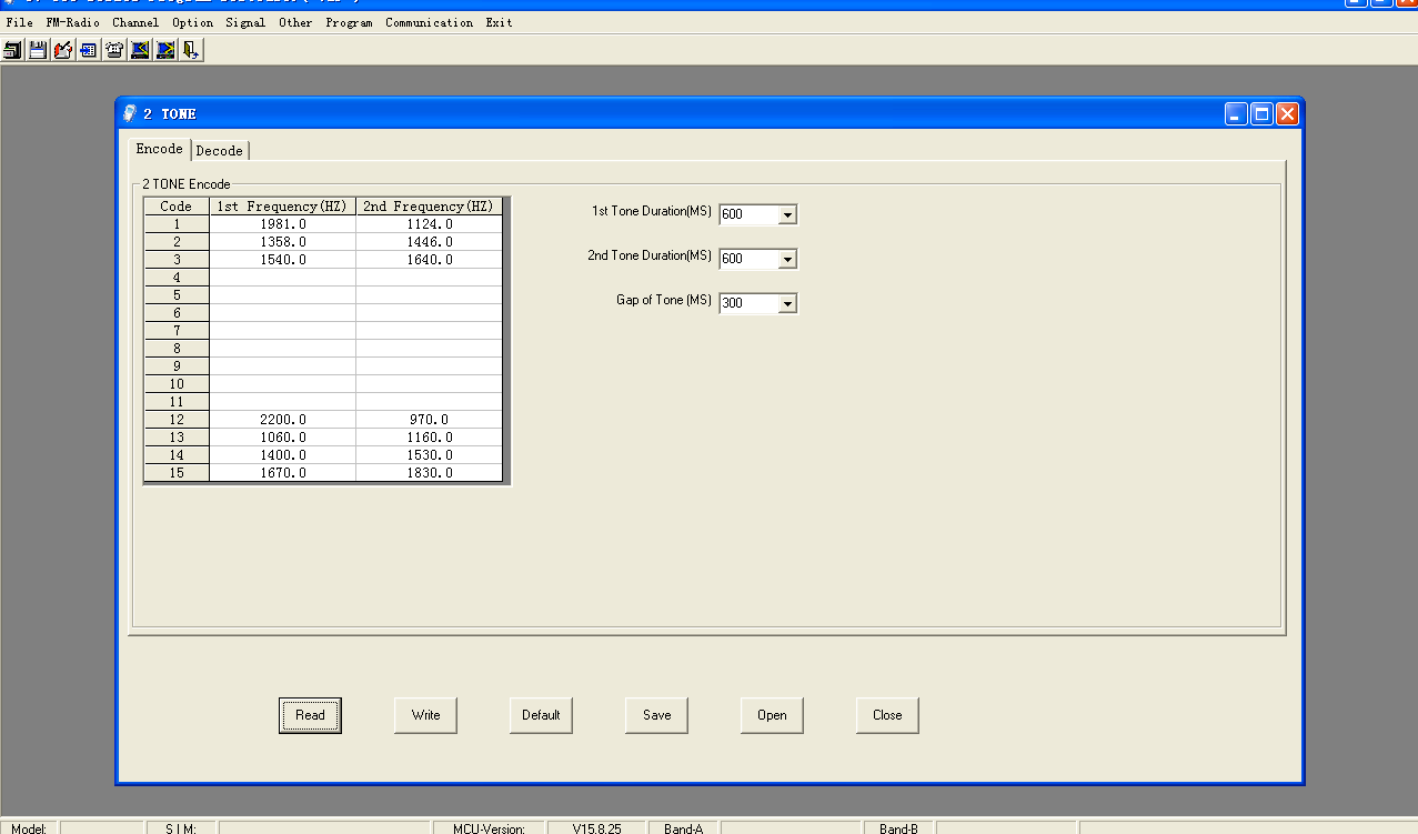 - Upload back to the radio – To transmit press the “CALL” key, and your 2 tone has been sent, the status indicator light will flicker when the receiver receives 2 tone signals. When the transmitting radio sends a 2Tone signal call, the receiver’s (Radio for RX) squelch will be opened. After 15 seconds (The above example setting in software), the 2 tone signaling will be invalid, and the transmitting transceiver (Radio for TX) must press the PTT key to call again, or the receiver’s (Radio for RX) squelch won’t be open