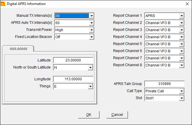 - Slot. Set this to the same time slot used for the APRS channel.